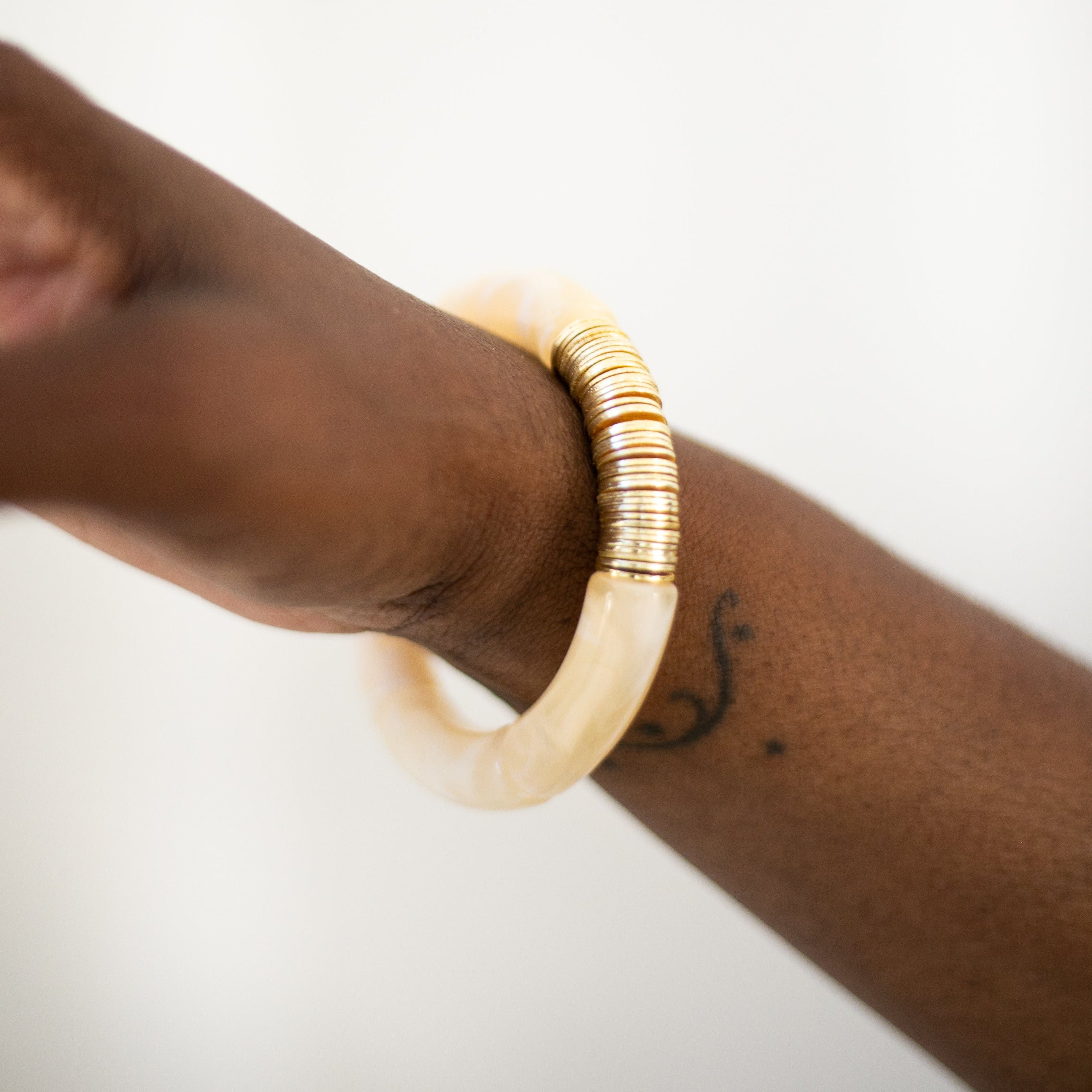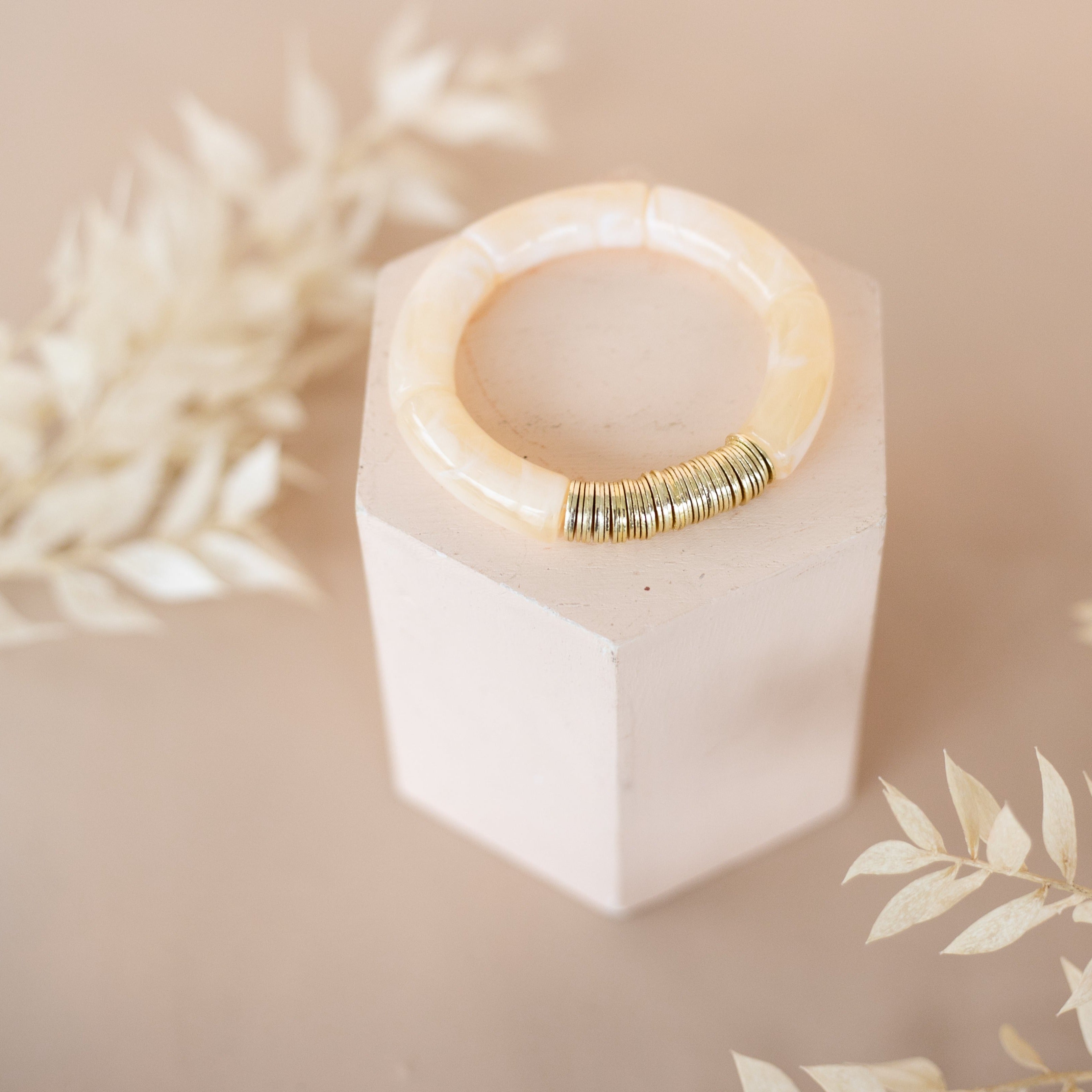 Acrylic + Gold Bamboo Bracelet: Ivory + Gold
