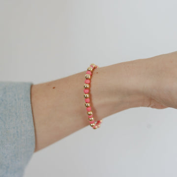 Gold Ball + Mini Bead Bracelet: Bubblegum