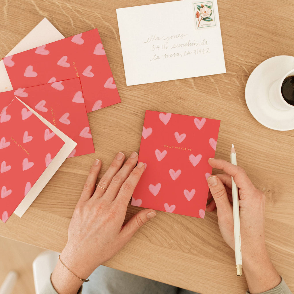 Sweet little hearts in a classic Valentine color palette to share with your favorite Valentine.