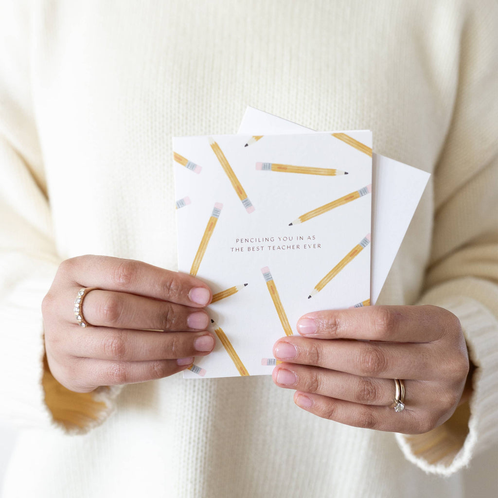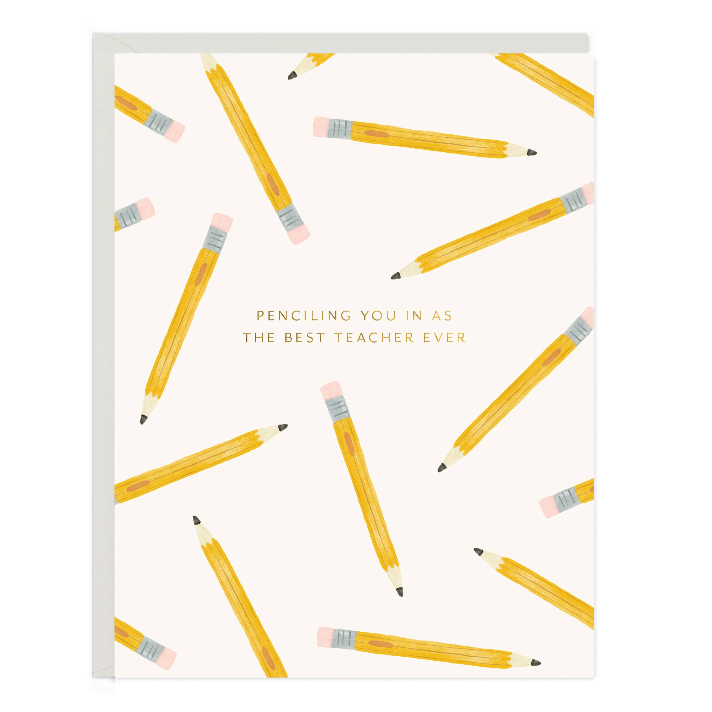 Show your gratitude to the incredible teachers who shape minds and inspire hearts with this charming card. Featuring a playful pattern of hand-drawn pencils and a heartfelt message, this card is the perfect way to let them know just how much they mean to you.